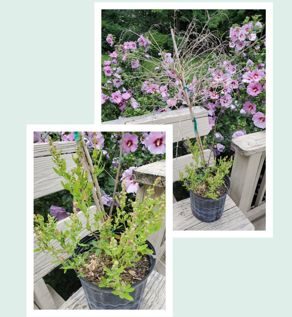 I almost finally tossed the batch of brittle twigs where Christmas wreaths and Autumn mums meet their final resting place out back when I noticed the FOLLOWING summer that new shoots were growing!  Take a look at this pic I grabbed from my social media account after I first noticed the new growth.